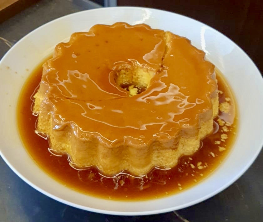 Deje enfriar antes de meterlo en el frigorífico. Reserve en el frigorífico al menos 4 horas y preferiblemente toda la noche para facilitar el desmoldado. Dé la vuelta sobre un plato o fuente honda (para que no nos caiga el caramelo) y retírelo cuidadosamente. Sirva inmediatamente.