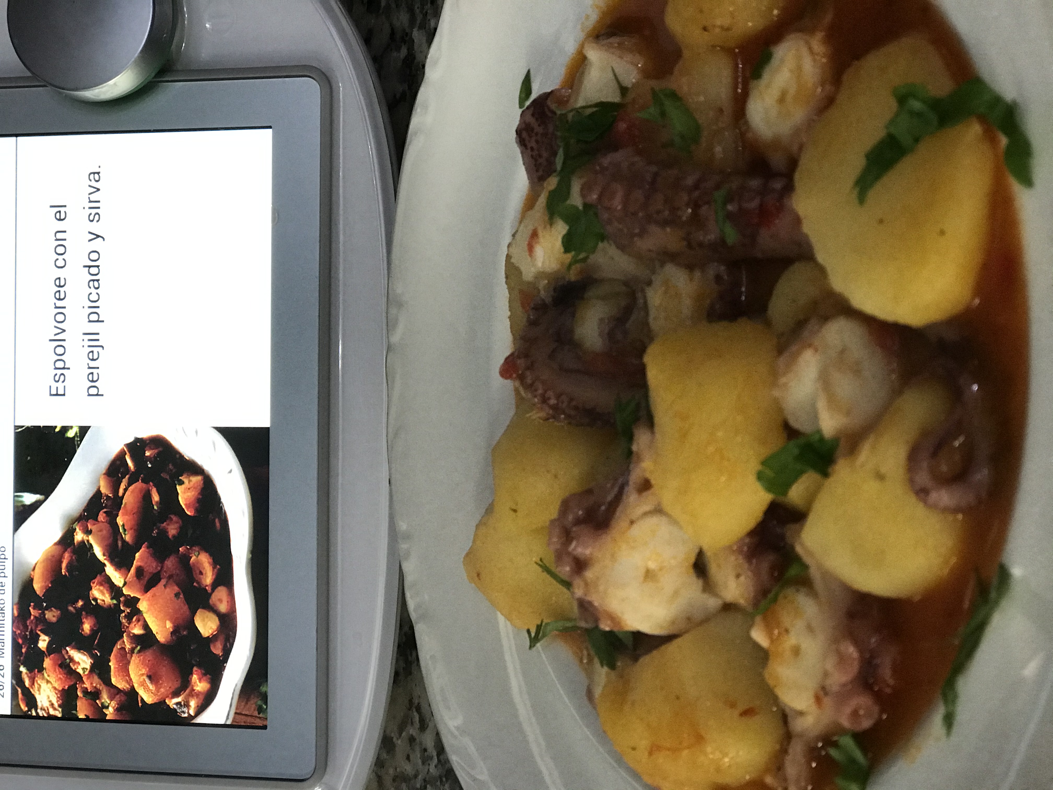Incorpore el pulpo y programe 3 min/100°C//vel . Vierta en una fuente, espolvoree con el perejil picado y sirva.